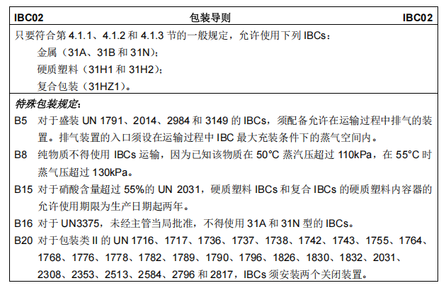 6、如果想要用中型散装容器进行运输,那么就继续看第(10)栏的IBC02;