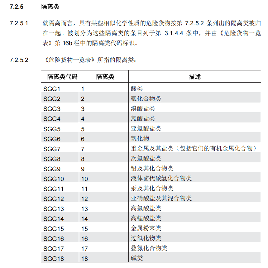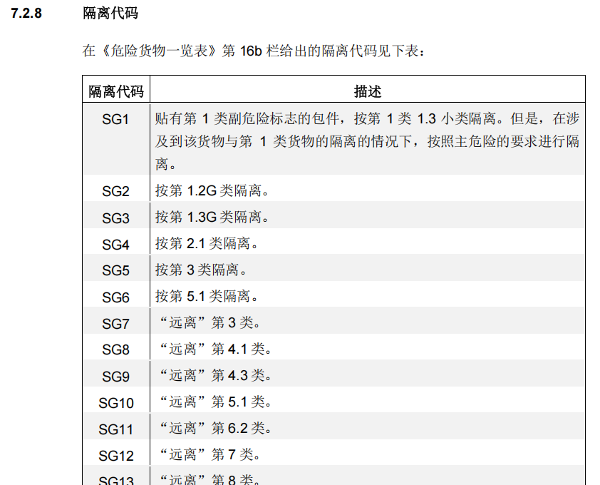(16b)隔离:包括隔离类和隔离代码。隔离分危险货物包件之间的隔离、货物运输组件之间的隔离、集装箱船/滚装船/杂货船/载驳船的隔离等等。
