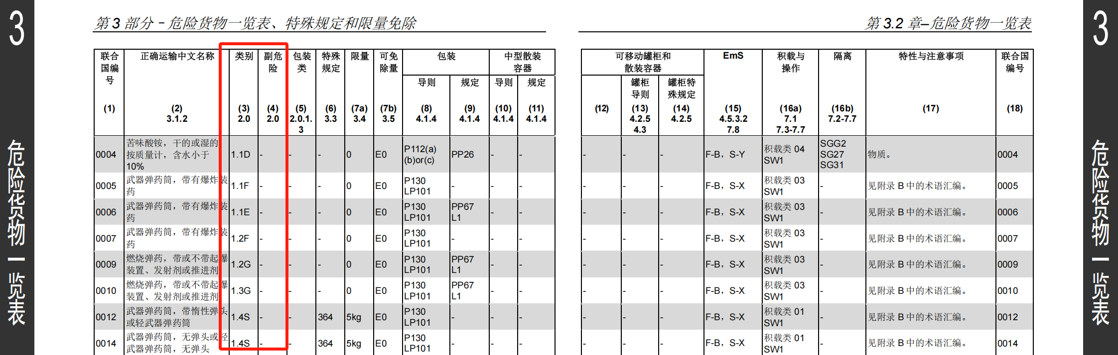 第3部分:危险货物一览表