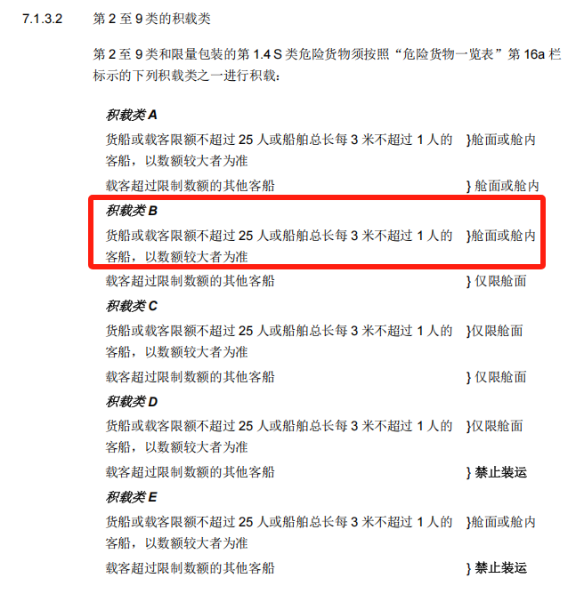 10、继续向右看第(16a)栏,是积载类B,可以在《危规》7.1.3.2中找,主要是确定危险货物是否允许装货/客船以及装在船的舱面/舱内等。