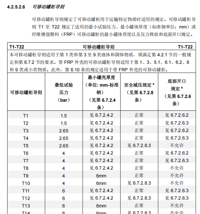 7、如果想要用可移动罐柜进行运输,那么就继续看第(13)栏的T7;