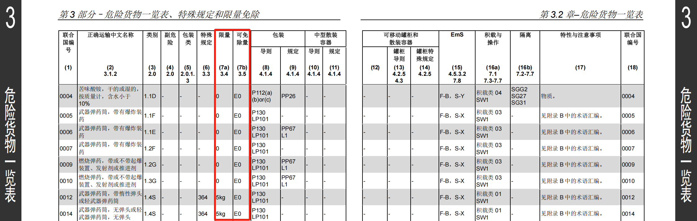 危险货物一览表的篇幅是最大的,在纸质发行版是单独编成一本书的。