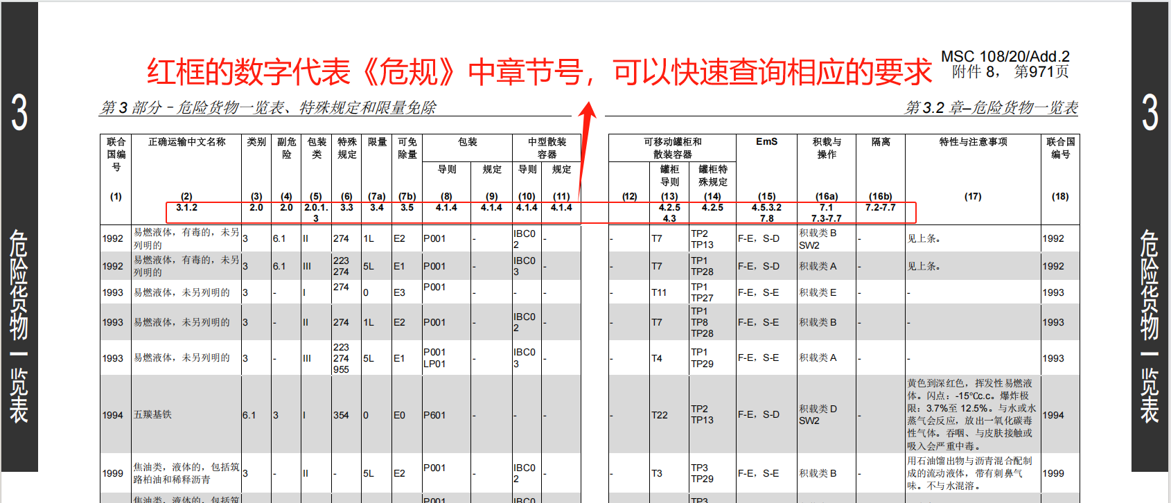 至此,危险货物一览表涉及的代码的信息已经找完了。