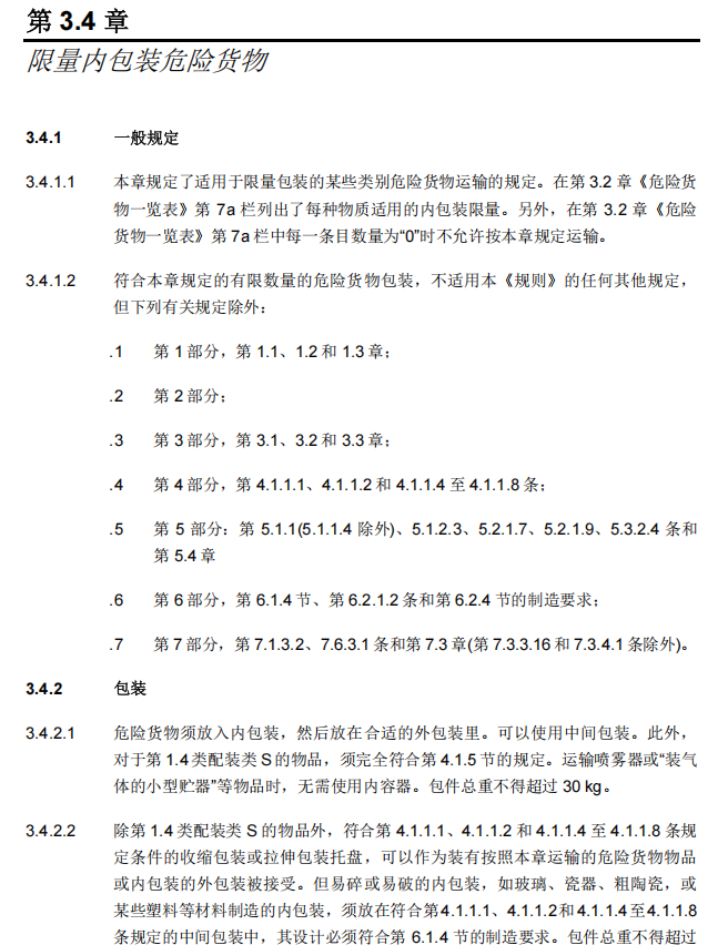 3、限量是1L(显示是“0”代表不允许限量运输),可以在《危规》的3.4章进行查阅,确定更具体的要求;